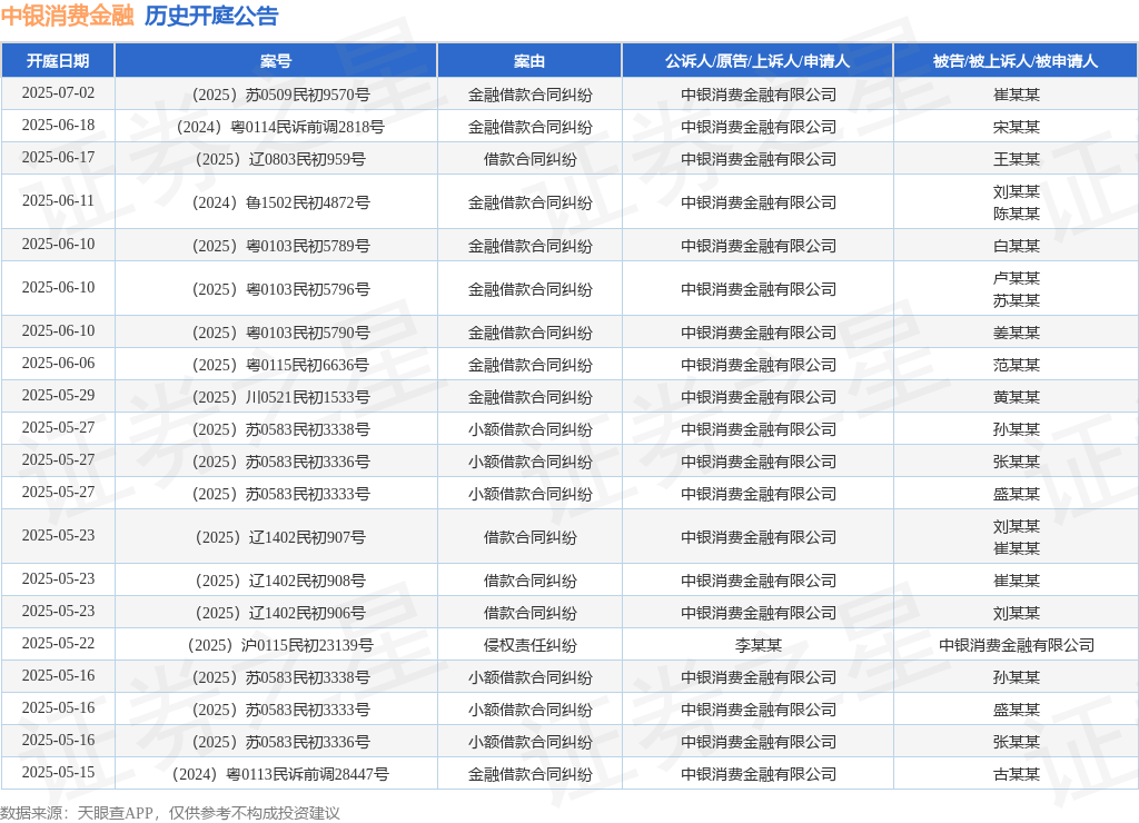 本站消息,根据天眼查APP显示,近日公布了一则中银消费金融有限公司作为原告/上诉人的开庭公告,详细内容如下: